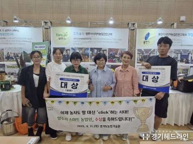 [경기헤드라인=김윤종 기자] 양주시는 지난 11일 경기도농업기술원에서 열린 ‘2025년 경기도 농업인 스마트경영 혁신대회’에 참가한 양주시사이버농업인연구회가 스마트콘텐츠(고령) 분야와 스마트경영(개인) 분야에서 각각 대상을 수상했다고 밝혔다.