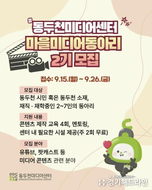 [경기헤드라인=김윤종 기자] 동두천시는 주민이 직접 지역 이야기를 촬영·편집해 공유하는 ‘마을미디어 동아리 2기’ 참가자를 모집한다고 15일 밝혔다.