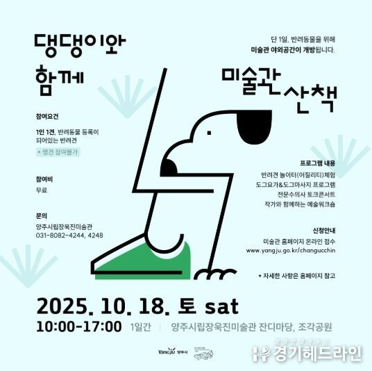 [경기헤드라인=김윤종 기자] 양주시립장욱진미술관은 오는 10월 18일, 반려견과 함께하는 특별 프로그램 '댕댕이와 함께 미술관 산책'을 개최한다.