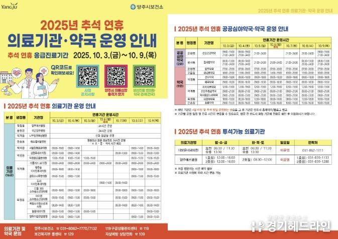 양주시보건소는 연휴 기간 동안 상황근무반을 운영해 관내 의료기관과 약국 진료 일정 안내 및 응급진료 체계 점검을 통해 시민 불편을 최소화할 계획이다.