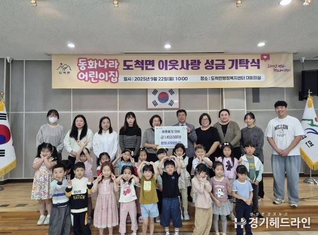 [경기헤드라인=정현수 기자] 광주시 도척면에 위치한 동화나라어린이집은 지난 22일 학부모와 원아 30여 명이 함께 도척면 행정복지센터를 방문해 프리마켓 수익금 145만 3천 원을 어려운 이웃을 위해 써달라며 전달했다.