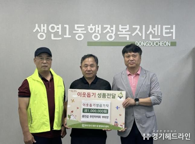 [경기헤드라인=김윤종 기자] 동두천시 생연1동 행정복지센터는 생연1동 주민자치회 홍민섭 부회장이 복지 사각지대 이웃을 위해 성금 100만 원을 기탁했다고 밝혔다.