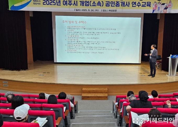 [경기헤드라인=정현수 기자] 여주시는 지난 24일 여성회관에서 관내·외 개업(소속)공인중개사 60여 명을 대상으로 ‘2025년 개업(소속)공인중개사 연수 교육’을 실시했다.