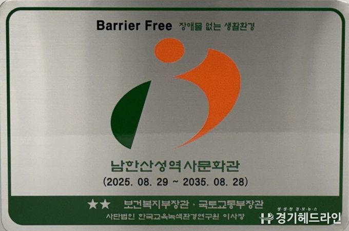 [경기헤드라인=문수철 기자] 경기문화재단 남한산성역사문화관은 문화시설로서 ‘장애물 없는 생활환경(배리어 프리, Barrier-Free)‘ 본 인증(우수등급)을 획득했다고 밝혔다. 이번 인증은 남한산성역사문화관이 모든 이용자에게 차별 없는 접근성을 보장하고, 사회적 약자를 포함한 누구나 편리하고 안전하게 이용할 수 있는 공간을 만들기 위해 지속적으로 노력해 온 결실이다.