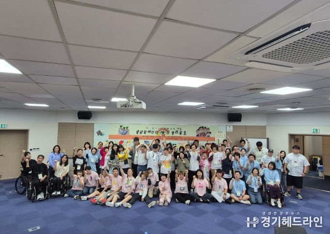 [경기헤드라인=정현수 기자] 이천시장애인자립생활센터는 9월 24일부터 1박 2일간 동원리더스아카데미 연수원에서제1회 이천피플퍼스트 대회를 개최했다. 지역의 발달장애인 50명이 참여하고 조력자 30여명이 함께 한 이 대회는 발달장애인이 스스로 목소리를 높여 권리의 주체임을 선언하고 대회를 직접 기획하며 권리를 주장하는 자리였다.