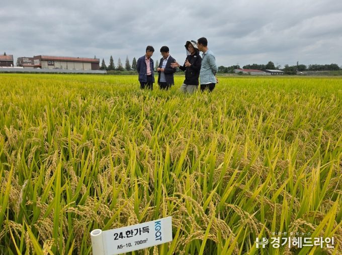 [경기헤드라인=문수철 기자] 김포시농업기술센터는 지난 9월 25일 전북 익산과 김제에 위치한 한국농업기술진흥원과 벼 보급종 채종포를 방문해 김포 지역특화 벼 신품종인 ‘한가득’의 원종과 보급종 생육상황을 점검했다.
