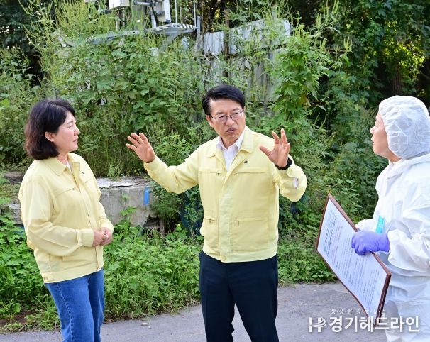 [경기헤드라인=문수철 기자] 최근 경기 북부(양주, 파주, 연천)에서 아프리카돼지열병(ASF) 발생 사례가 잇따르는 가운데 김대순 경기도 행정2부지사가 26일 파주시 파주읍 부곡리 소재 양돈농장을 방문해 아프리카돼지열병(ASF) 차단방역 실태를 직접 점검했다.