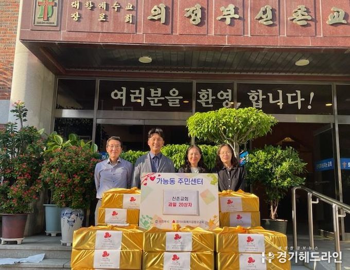 [경기헤드라인=문수철 기자] 의정부시 가능동주민센터는 9월 25일 의정부신촌교회가 추석을 앞두고 관내 독거노인 등 어려운 이웃들을 위해 과일 20상자를 기탁했다고 밝혔다.