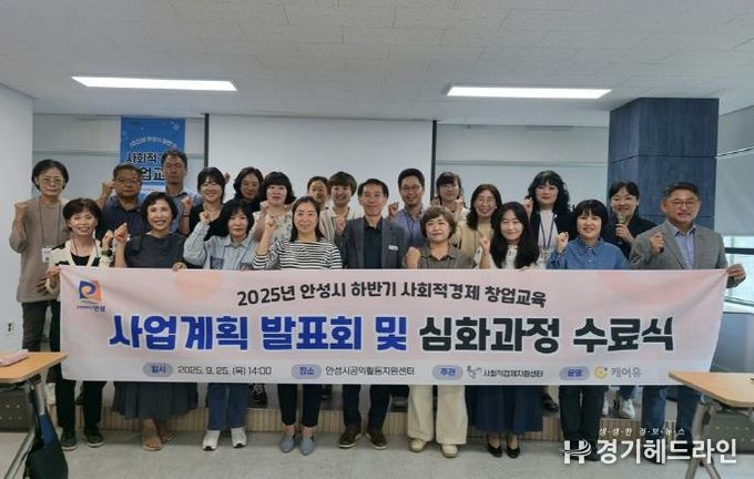 [경기헤드라인=문수철 기자] 안성시는 9월 25일 안성시공익활동지원센터 교육장에서2025년 하반기 사회적경제 창업교육 심화과정 수료식을 성황리에 개최했다.