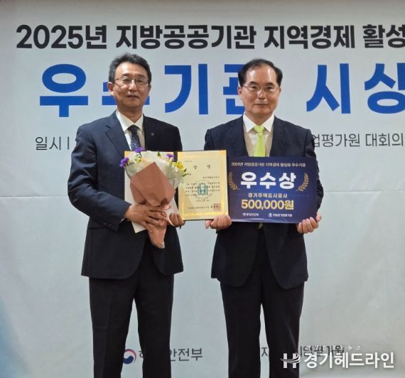 [경기헤드라인=문수철 기자] 경기주택도시공사는(GH)는 서울 서초구 지방공기업평가원에서 열린 ‘2025년 지방공공기관 지역경제 활성화 우수사례’ 시상식에서 하남교산지구 수열·태양광 활용 ‘에너지비용 제로 아파트’ 시범사업으로 ‘사회적 가치 실현’ 분야 우수상을 수상했다고 29일 밝혔다.