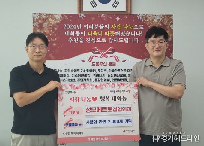 [경기헤드라인=김홍량 기자] 고양특례시 일산서구 대화동은 추석 명절을 앞둔 지난 26일, 성모메트로정형외과로부터 취약계층 지원을 위한 사랑의 라면 2,000개를 기탁받았다고 밝혔다.