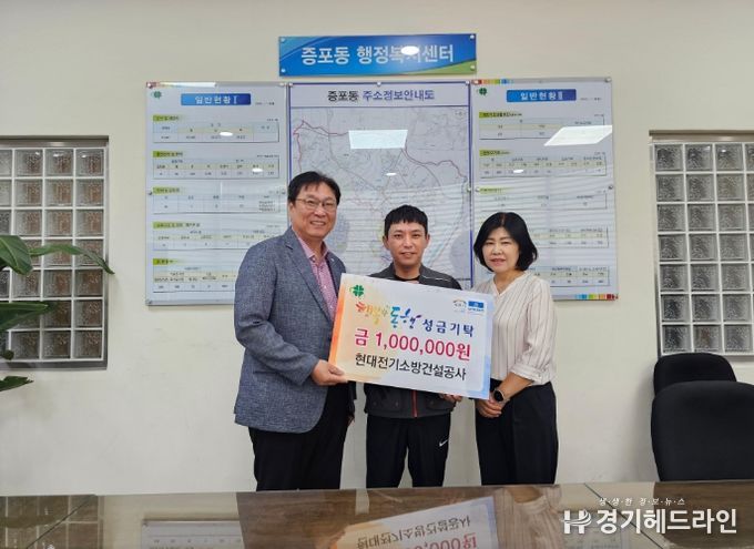 [경기헤드라인=정현수 기자] 이천시 증포동은 9월 29일, 추석 명절을 앞두고 이천시에 있는 현대전기소방건설공사가 ‘행복한 동행’ 성금 100만 원을 기탁했다고 밝혔다.