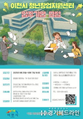 한편, 이천시 청년창업지원센터는 청강문화산업대학교 산학협력단이 위탁 운영하며, 이천시 애련정로 29 소재 청소년생활문화센터 2층에 자리한다. 내부에는 독립형·개방형 오피스, 미팅룸, 세미나실, OA존, 휴게공간 등 청년창업 맞춤형 인프라가 갖춰질 예정이다.