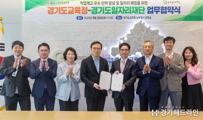 [경기헤드라인=문수철 기자] 경기도교육청이 30일 남부청사에서 경기도일자리재단과 도내 직업계고 학생의 성공적 사회 진출 및 일자리 창출을 위한 업무 협약을 체결했다.