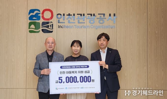 [경기헤드라인=문수철 기자] 인천관광공사가 창립 10주년을 맞아 인천지역 아동복지 지원 성금 500만원을 인천아동복지협회에 전달했다.