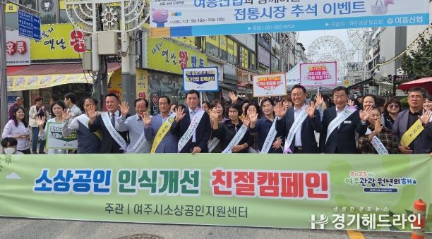 [경기헤드라인=정현수 기자] 여주시는 여주시소상공인지원센터 주관으로 2025년 추석 명절을 앞두고 물가안정과 지역경제 활성화를 위한 '추석 명절 맞이 소상공인 친절 캠페인'을 여주5일 장날인 9월 30일에 실시했다. 이번 행사는 한글시장과 세종시장에서 진행됐으며, 시민들과 상인들로부터 큰 호응을 얻었다.