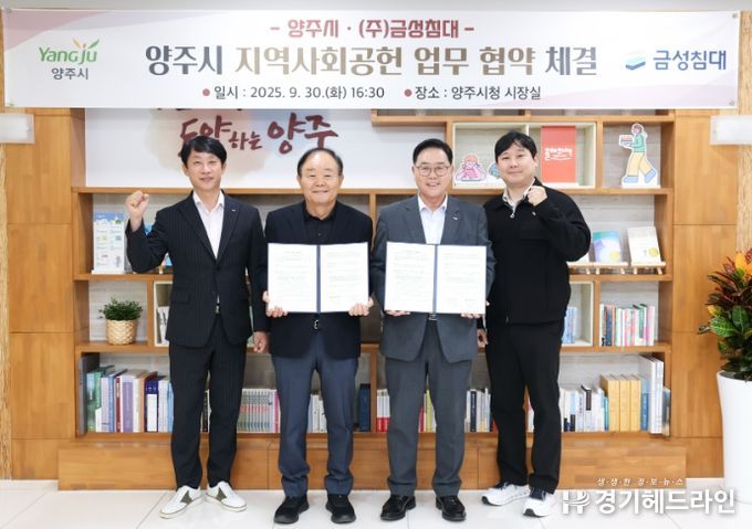 [경기헤드라인=김윤종 기자] 양주시가 지난 30일 시청 시장실에서 ㈜금성침대와 지역사회공헌 업무 협약을 체결했다.