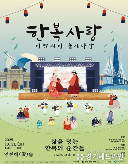 [경기헤드라인=문수철 기자] 인천광역시는 10월 15일 인천시민의 날과 10월 21일 한복의 날을 맞아 오는 10월 11일 시청 인천애(愛)뜰에서 ‘2025년 한복사랑 인천시민 놀이마당’을 개최한다고 밝혔다.