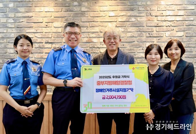 [경기헤드라인=문수철 기자] 중부지방해양경찰청은 지난 1일 연수구청에서 다가오는 추석 명절 지역사회 나눔 실천의 일환으로 중증장애인 거주시설 ‘밝은 마음’에 기부금을 전달했다고 밝혔다.