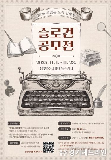 [경기헤드라인=문수철 기자] 남양주시는 11월 1일부터 23일까지 ‘2026 책읽는 도시 남양주 슬로건 공모전’을 개최한다고 밝혔다.
