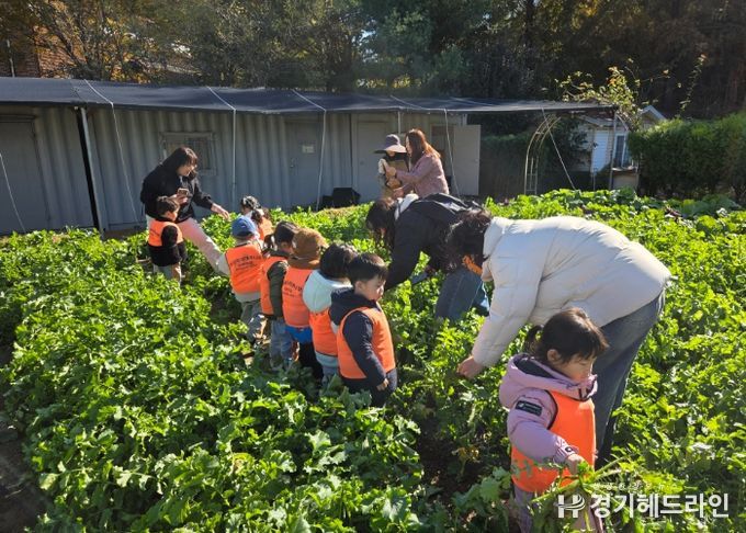 이번 프로그램은 시 홈페이지를 통해 사전 신청한 어린이집 단체 200여 명을 대상으로 진행됐다. 참여한 어린이들은 그린학습원 내 텃밭에 심어진 김장 채소를 관찰하고 직접 무를 수확하는 체험을 했다.