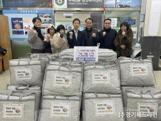 [경기헤드라인=문수철 기자] 구리시 수택3동 주민자치회는 지난 3일, 겨울철 한파에 대비하여 관내 저소득 어르신 가정 27세대에 겨울 이불 27채(약 108만원 상당)를 전달했다고 밝혔다.