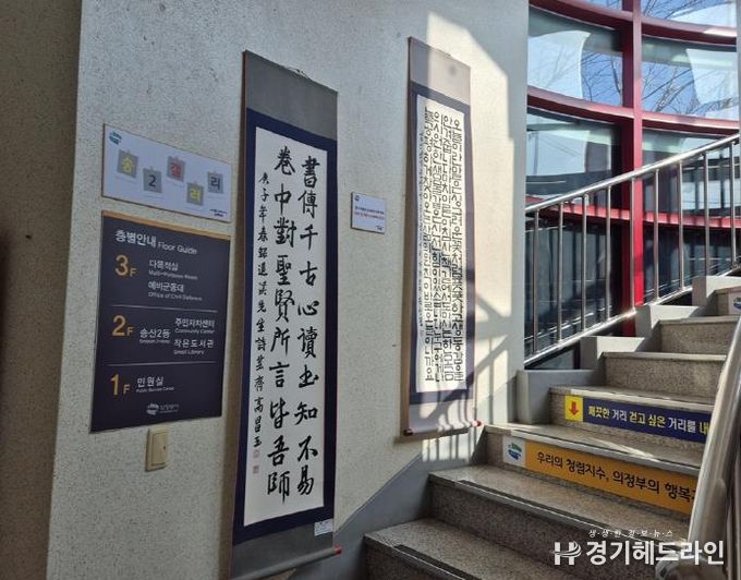 [경기헤드라인=문수철 기자] 의정부시 송산2동주민센터는 올해 주민센터 1~3층 계단 옆 벽면을 활용해 ‘송2갤러리’를 운영했다.