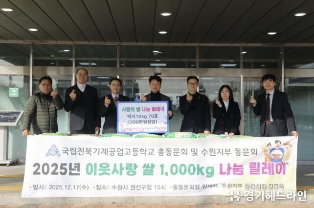 [경기헤드라인=문수철 기자] 권선구는 지난 17일, 국립전북기계공고 총동문회로부터 백미 10kg 70포(200만 원 상당)를 후원받았다고 밝혔다.