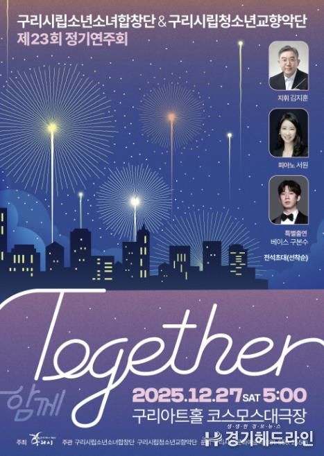 [경기헤드라인=문수철 기자] 구리시는 오는 12월 27일 오후 5시, 구리아트홀 코스모스 대극장에서 구리시립소년소녀합창단과 구리시립청소년교향악단이 함께하는 '제23회 정기연주회 Together–함께'를 개최한다.