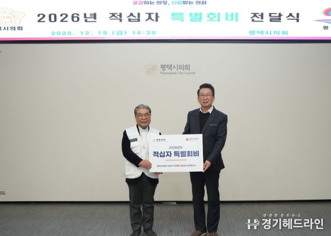 [경기헤드라인=문수철 기자] 평택시의회는 19일, 평택시의회 3층 간담회장에서 대한적십자사 경기도지사에 적십자 특별회비 전달식을 가지고 이웃사랑 실천에 동참했다.