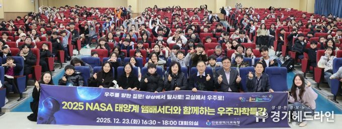 [경기헤드라인=문수철 기자] 인천광역시교육청은 관내 초·중·고등학생 450명을 대상으로 NASA JPL 태양계 앰배서더인 폴윤 교수의 우주과학 특강 ‘NASA 우주 탐사와 우주 경제’를 운영했다.