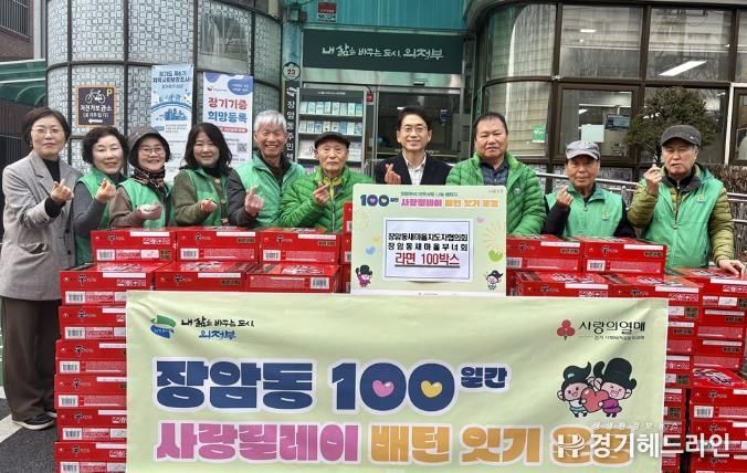 [경기헤드라인=문수철 기자] 의정부시 장암동주민센터는 1월 15일 장암동 새마을지도자협의회·새마을부녀회가 겨울철 어려운 이웃들을 위해 라면 100상자를 전달하며 ‘100일간 사랑릴레이 배턴 잇기’에 동참했다고 밝혔다.