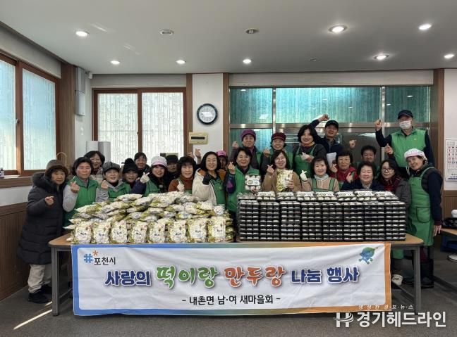[경기헤드라인=김홍량 기자] 포천시 내촌면 남·여 새마을회는 지난 3일 내촌면 행정복지센터 내 새마을부녀회 조리공간에서 ‘사랑의 떡이랑 만두랑 나눔 행사’를 진행했다.