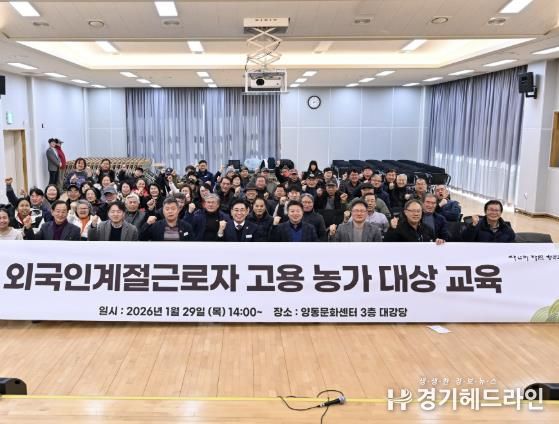[경기헤드라인=문수철 기자] 양평군은 지난 1월 29일 오후 2시부터 5시까지 양동면 문화센터 3층 다목적회관에서 ‘2026년도 외국인 계절근로자 고용농가 대상 교육’을 실시했다.