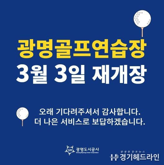 [경기헤드라인=문수철 기자] 광명도시공사는 약 3개월간의 개보수공사를 마치고 오는 3월 3일 광명골프연습장을 재개장 한다고 밝혔다.