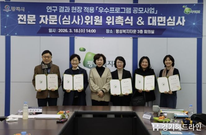 [경기헤드라인=문수철 기자] 평택복지재단은 2026년 3월 18일, 팽성복지타운에서 관내 사회복지 서비스의 질적 도약과 지역복지 강화를 위한녪년 연구 결과 현장 적용 우수프로그램 공모사업’심사위원 위촉식 및 대면 심사를 진행했다.