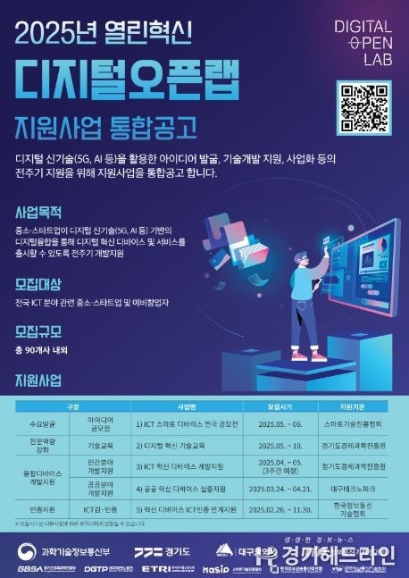 신청 대상은 경기도에 사업장을 둔 중소기업 또는 스타트업이다. 디바이스나 관련 서비스 개발 역량을 보유한 기업이라면 열린혁신 디지털 오픈랩 공식 누리집을 통해 온라인으로 신청할 수 있다.