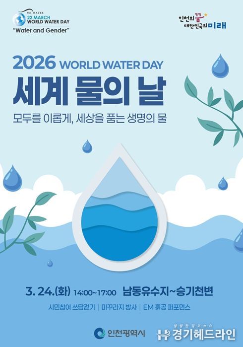 [경기헤드라인=문수철 기자] 인천광역시가 24일 남동유수지 일원에서‘2026년 세계 물의 날’을 기념해 시민들과 함께 발로 뛰는 환경정화 캠페인‘쓰담걷기(플로깅)’행사를 개최했다.