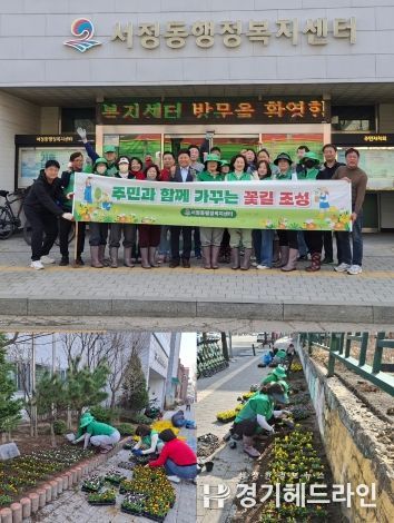 ‘꽃으로 피어나는 서정동’을 주제로 이날 행사에는 송성희 서정동장을 비롯해 새마을남녀지도자협의회 등 단체 회원과 공무원, 주민들이 동참해 정성스레 꽃을 심으며 마을 곳곳에 생동감을 더했다.