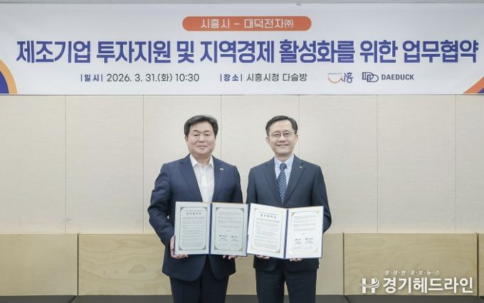 [경기헤드라인=문수철 기자] 시흥시는 지난 3월 31일 시청 다슬방에서 대덕전자(주)와 ‘제조기업 투자지원 및 지역경제 활성화를 위한 업무협약’을 체결했다.