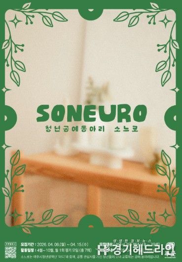[경기헤드라인=정현수 기자] 여주시청년활동지원센터 푸릇은 오는 4월 청년공예동아리 'soneuro(소느로)' 참여자를 모집한다고 밝혔다.