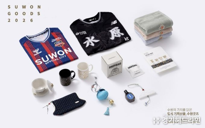 선정된 굿즈는 ▲수원담은 책갈피(이상공작소) ▲커피 드립백(정지영커피로스터즈) ▲효심깃든 복소라 풍경(봄날애공방) ▲수원화성을 담은 황금비율 아토얼 수건(아웃사이트) ▲점심다휴(도예공방공기) ▲수원화성을 담은 구름향기 모빌(스튜디오 수) ▲우리동네, 수원산책(양알마) ▲탐색 기와파우치(아트딜리버리) ▲정조대왕 유니폼(케이티스포츠 케이티위즈) ▲2026시즌 홈 유니폼(재단법인 수원FC)이다.