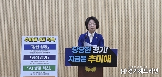 [경기헤드라인=문수철 기자] 더불어민주당의 6·3 지방선거 경기도지사 후보로 추미애 의원이 최종 확정됐다. 본 경선에서 과반을 득표하며 경쟁 후보들을 제치고 민주당의 ‘경기 대표 선수’로 선출된 것이다.