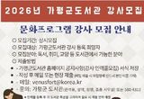 가평군도서관, "2026년 문화프로그램 강사 모집"