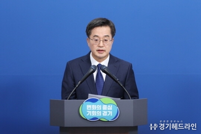 사진= 13일 오전 경기도청 브리핑룸에서 김동연 경기도지사가 정치현안 관련 입장문을 발표