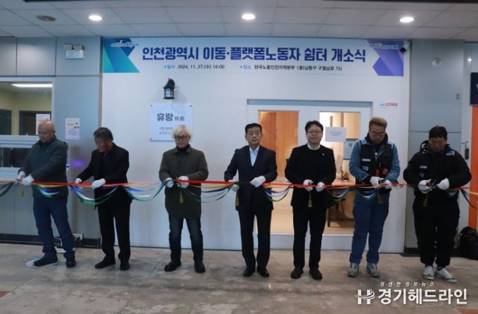 [경기헤드라인=문수철 기자] 인천광역시는 27일 남동구 남부근로자종합복지관(한국노총인천지역본부) 1층에 이동·플랫폼 노동자를 위한 쉼터를 개소했다고 밝혔다.