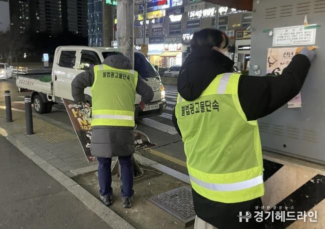 [경기헤드라인=문수철 기자] 수원특례시 장안구는 지난 9일, 영화동, 송죽동, 정자동 일대에서 불법광고물에 대한 합동 야간단속을 실시했다고 밝혔다. 이번 단속은 민원 제기 지역을 중심으로 도로변에 설치된 불법 광고물을 정비하는 데 중점을 두고 진행됐다.