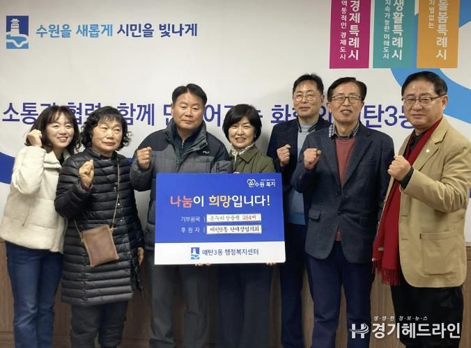[경기헤드라인=문수철 기자] 지난 16일 매탄3동 단체장협의회는 설 명절을 맞아 관내 소외계층을 위해 온누리 상품권 284만 원을 매탄3동 행정복지센터에 전달했다.