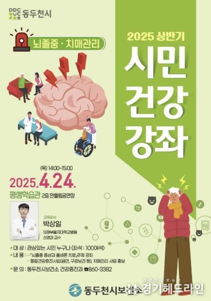 [경기헤드라인=김윤종 기자] 동두천시보건소는 2025년 상반기 시민건강강좌 ‘뇌졸중 증상과 올바른 치료’를 주제로 건강 강좌를 실시한다고 밝혔다.