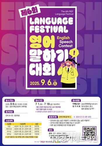 [경기헤드라인=문수철 기자] 경기도 평택시가 오는 9월 6일 개최되는 ‘제6회 Language Festival 영어 말하기대회’의 참가자를 모집한다. 이번 대회는 영어 말하기 능력은 물론, 청소년들의 창의적 사고력과 글로벌 감각을 키우기 위한 교육 프로그램의 목적으로 마련됐다.